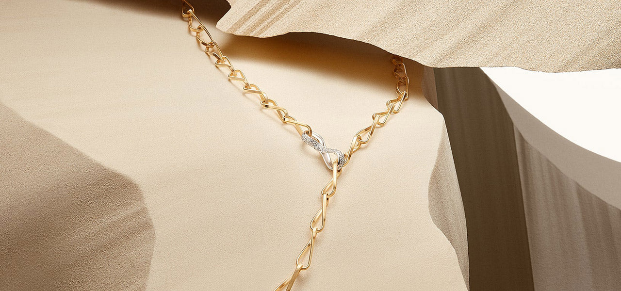 Created to celebrate the 20th anniversary of the brand and its first creation, the MARRAKECH ONDE collection is an elegant and romantic evolution: fine yellow gold strands made with the exclusive coil technique create deliberately irregular oval shapes, joined together with pavé diamonds to gently capture and reflect natural light. The result is a small masterpiece of goldsmithing, boasting a modern and refined design in keeping with the brand's core values: tradition and innovation.