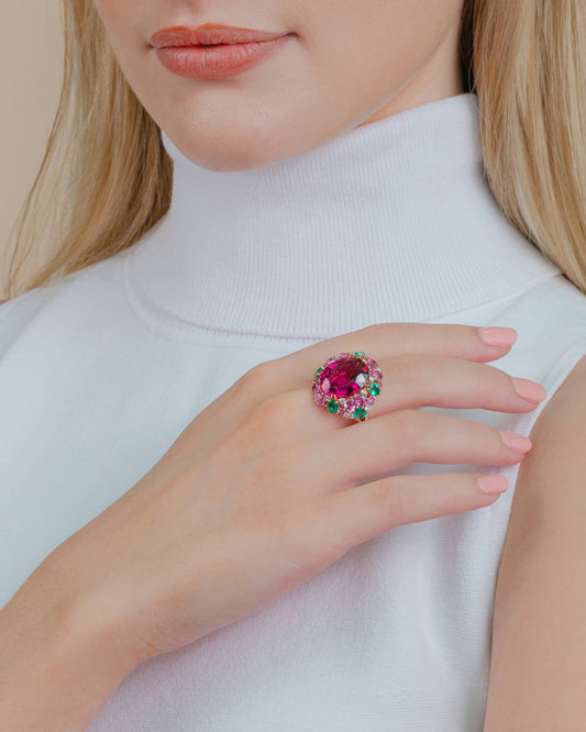South Sea Pearl, Diamond, Pink Sapphire and Rose De France Ring