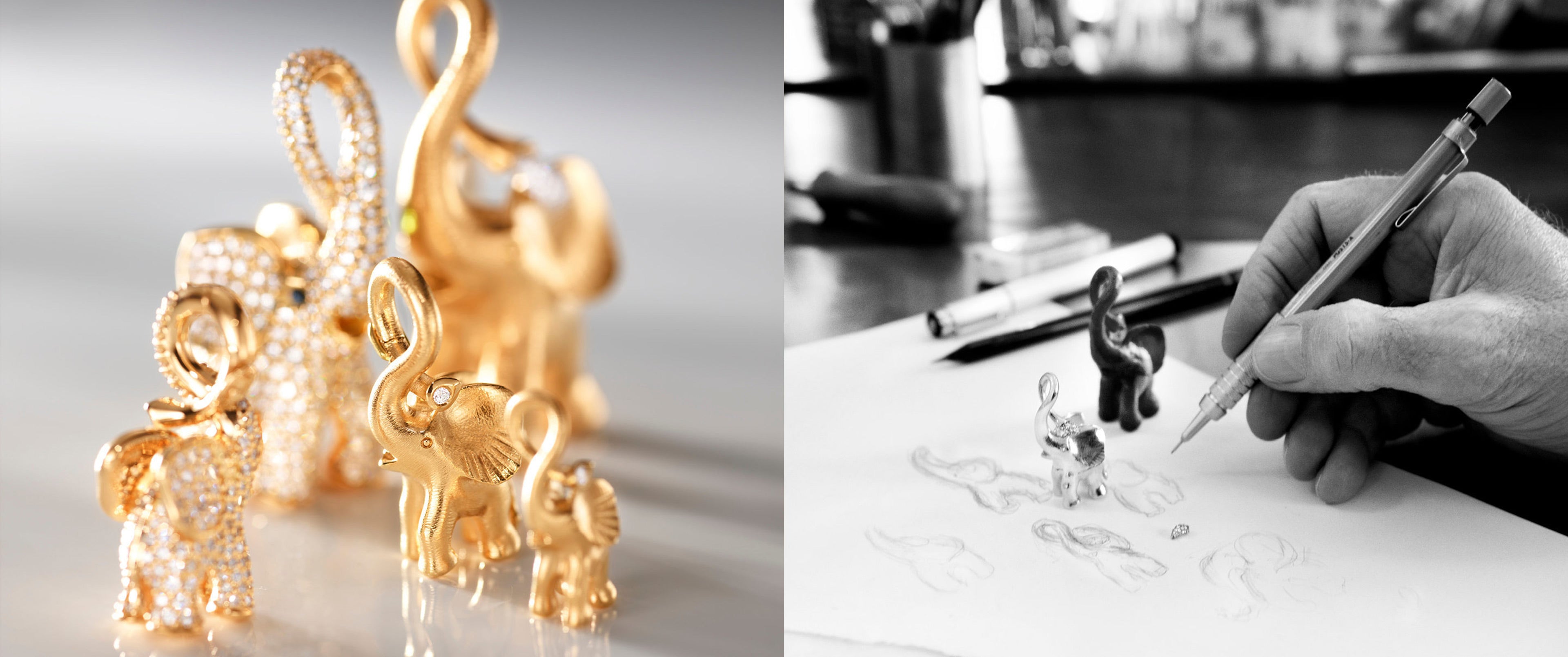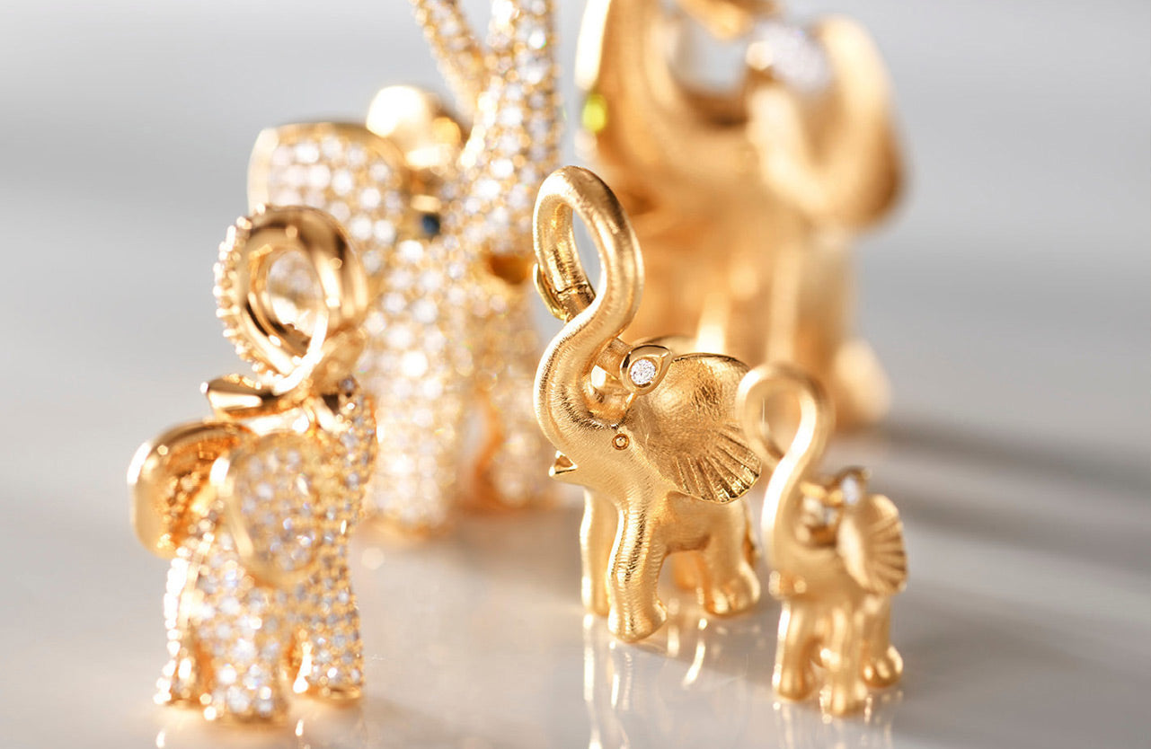 Ever since his youth, Ole Lynggaard has been fascinated with the gracious movements of elephants. Developing various elephant designs over the years, the brand founder was proud to introduce the collection of naturalistic elephant pendants at his 80th anniversary in 2016. All crafted from 18k gold and crisp white diamonds.