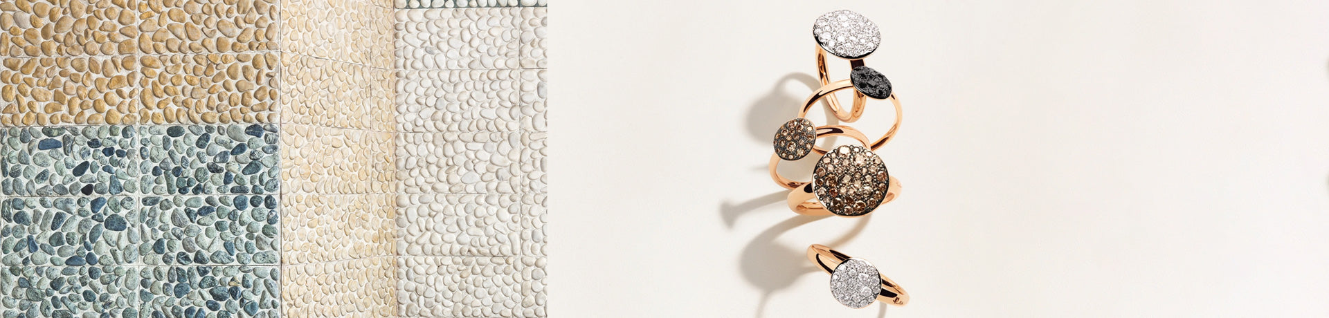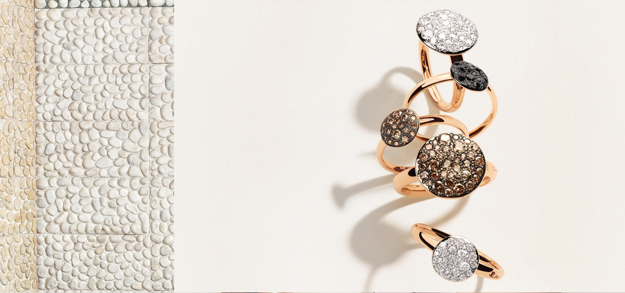 Inspired by the organic beauty in nature, the all-new Sabbia pieces feature diamonds that are exquisitely hand-set in irregular pavé that is designed to catch the light as you mix, match and stack.