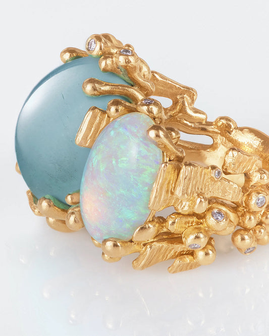 Ole Lynggaard 'BoHo' Ring with Aquamarine, Opal and Diamonds