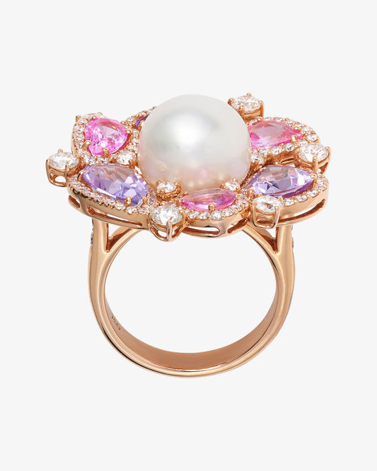 South Sea Pearl, Diamond, Pink Sapphire and Rose De France Ring