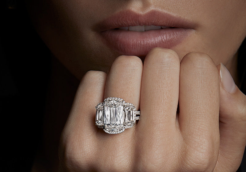 Its distinctive cut and 62 facets make the ASHOKA® diamond appear 30 percent larger than an emerald-cut diamond of the same weight. The rough needs to be larger and longer than most, and less than one percent of diamonds meet the exacting standards to become an ASHOKA®. According to legends, the original Ashoka diamond, named after a Buddhist emperor in third-century B.C., had the power to remove sorrow and bring joy to those who wore it. The modern-day ASHOKA® diamond inspires romance, intriguing customers with its unique history and story — it truly is a diamond unlike any other. It is The Diamond of Legend®.