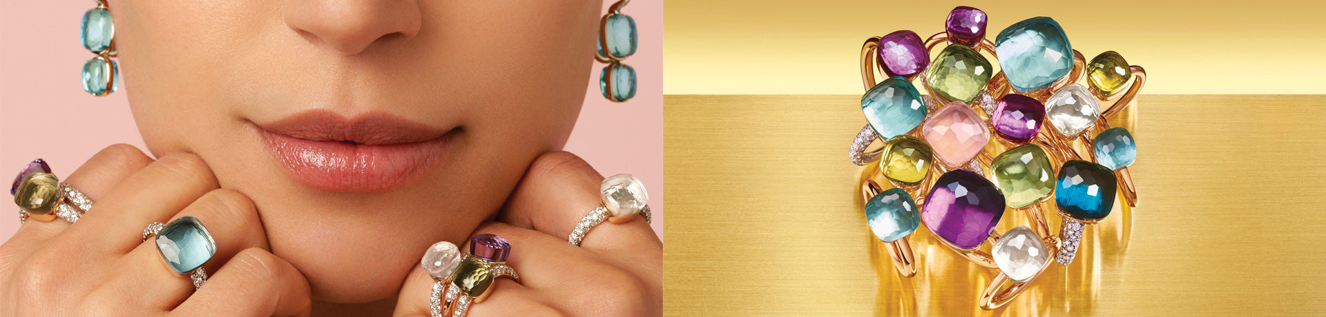 Shimmering in all the colours of the rainbow, every facet of Nudo’s magnificent gemstones evoke Pomellato’s joyful spirit in vivid perfection. Instantly stackable for a look as unique as you are, discover our most iconic collection to mix, match and collect.