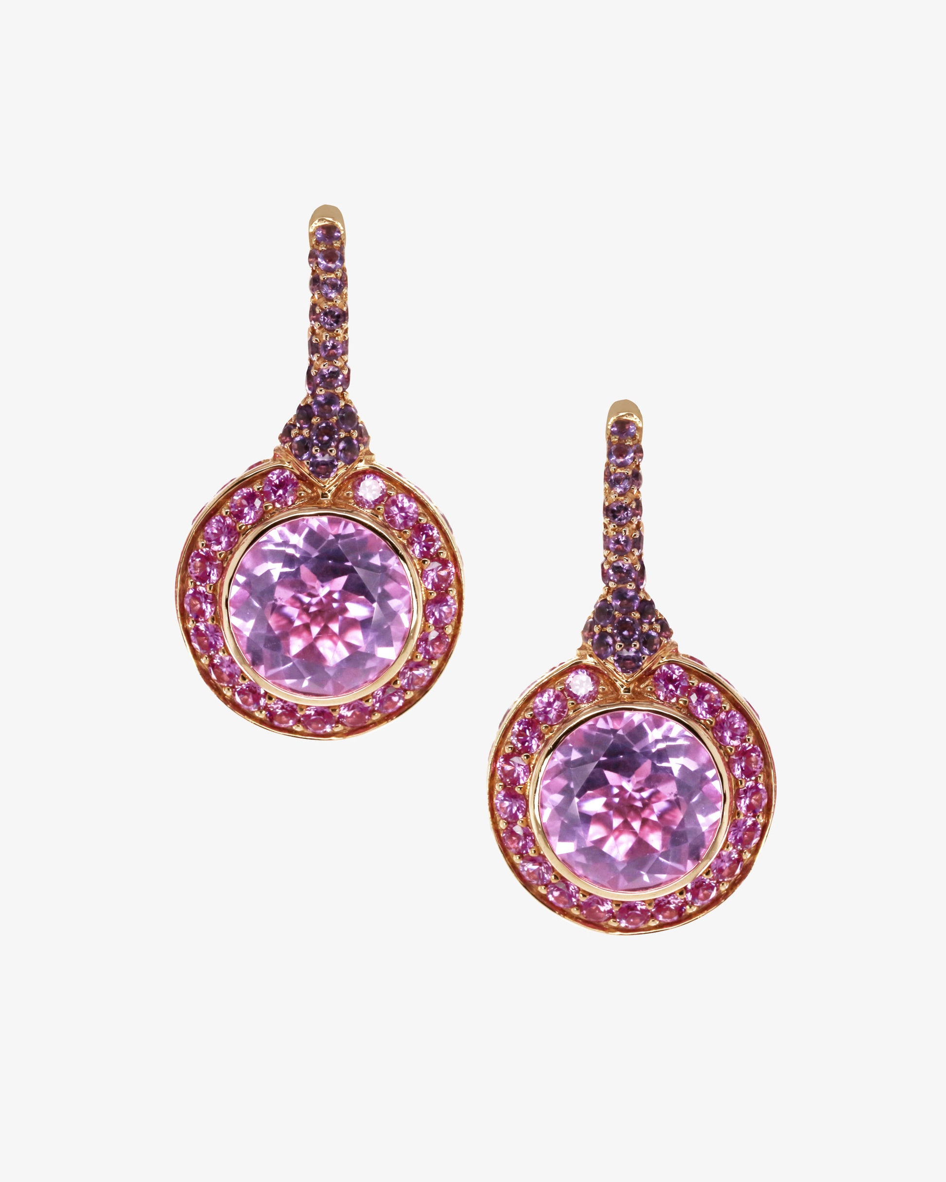18 Karat Rose Gold Amethyst and Pink Sapphire Drop Earrings.