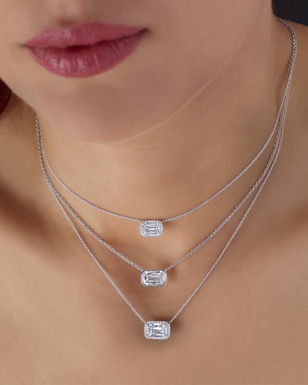 ASHOKA® classic sideways pendant, featuring an exquisite ASHOKA® cut Diamond, in a Platinum bezel setting, on a link chain.