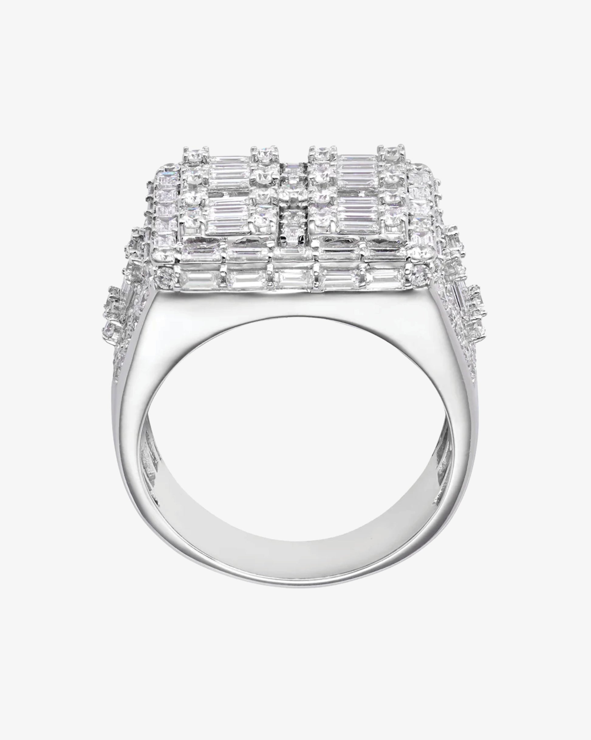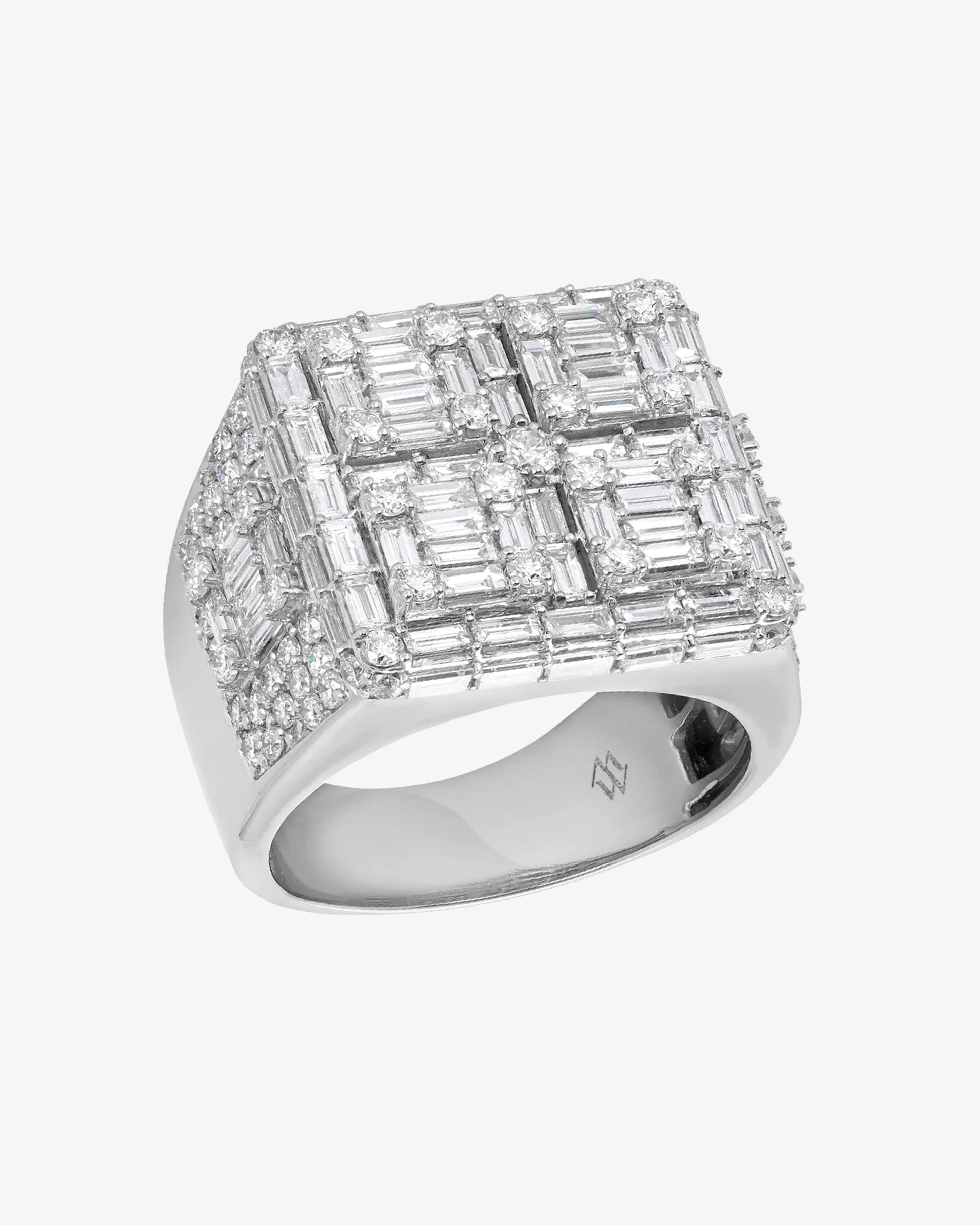 18 Karat White Gold Diamond Ring set with 3.18ct baguette cut Diamonds and 1.17ct round brilliant cut Diamonds.