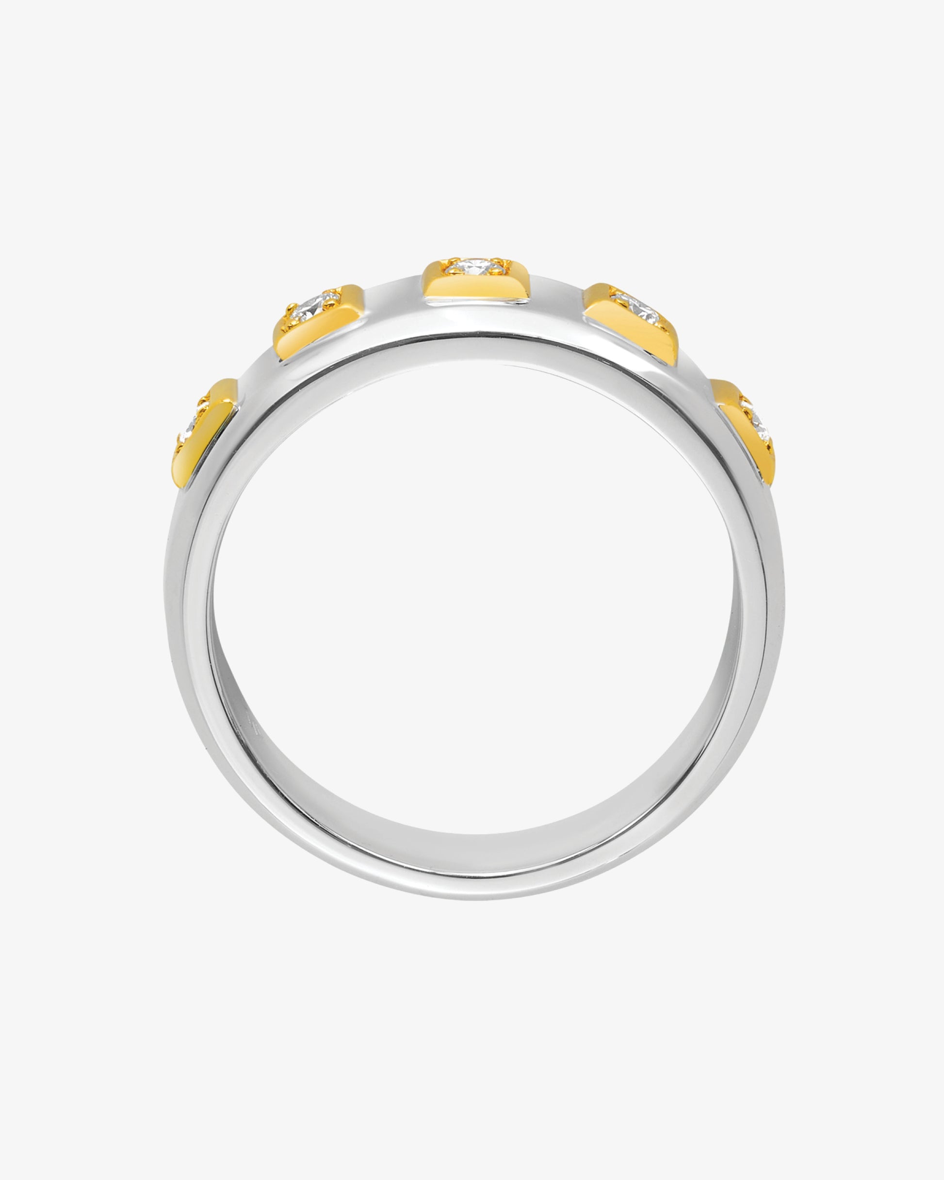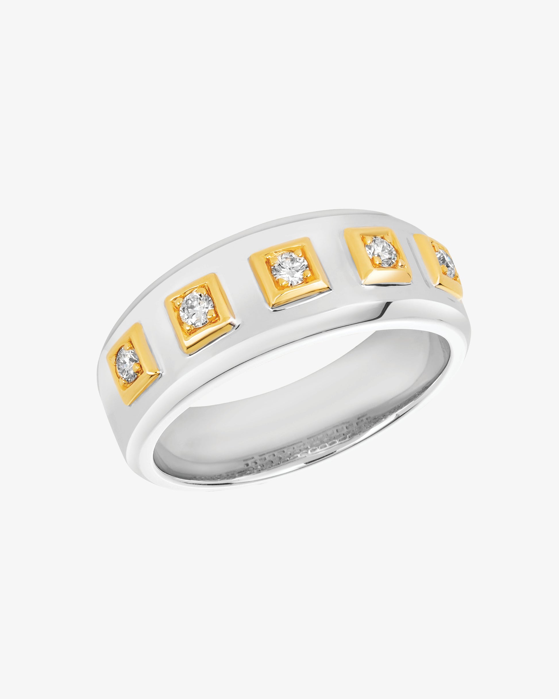 18 Karat Yellow & White Gold Two Tone Diamond Ring featuring 0.25ct F/G colour, VSS-VS clarity, round brilliant cut Diamonds.