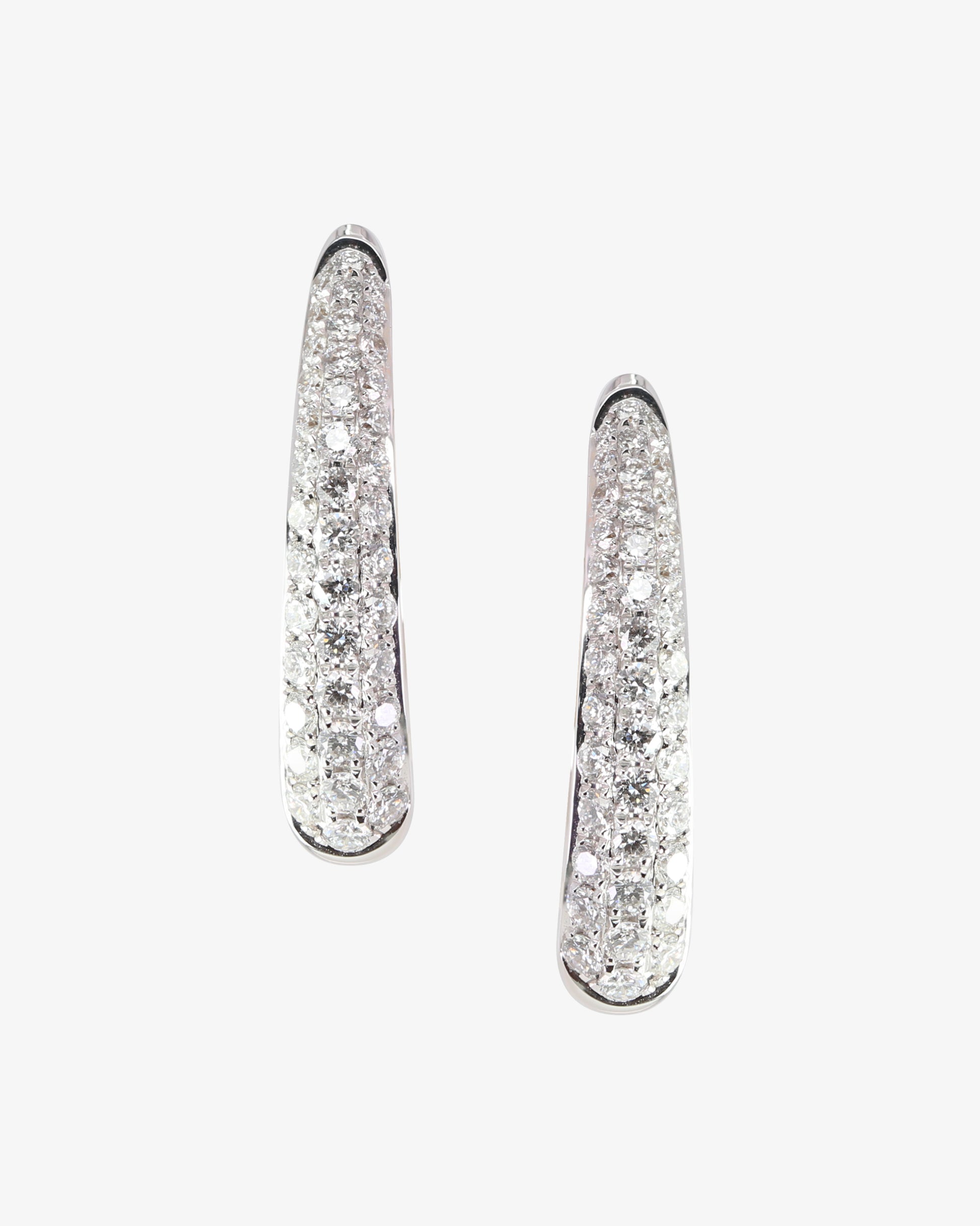 18 Karat White Gold Diamond Hoop Earrings featuring 80 = 0.70ct GH SI Round Brilliant Cut Diamonds.