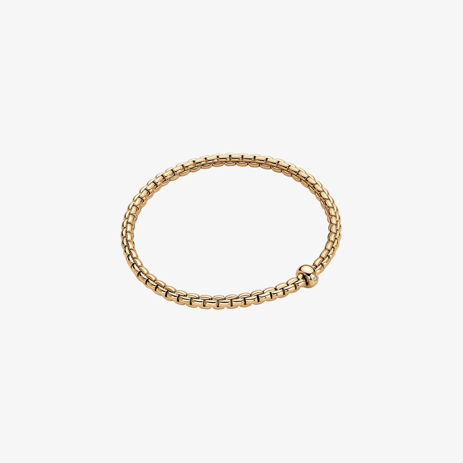 Flexible bracelet entirely made of 18 Karat Yellow gold and 0.01ct single diamond rondel.