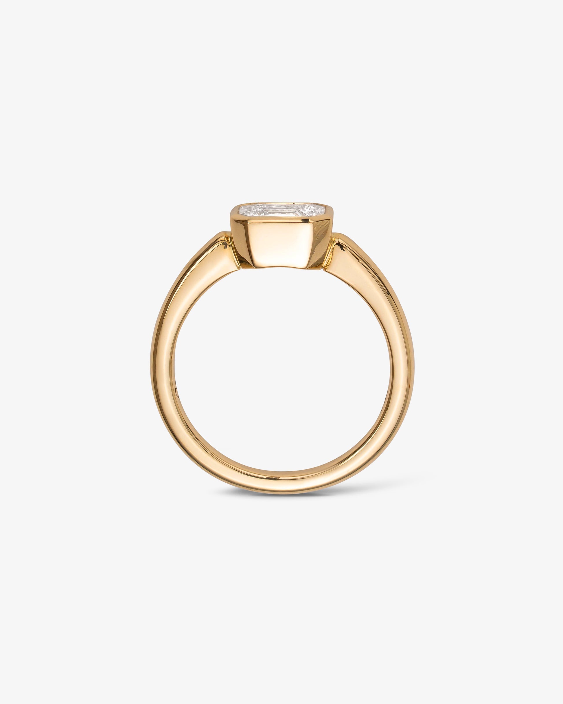 18 Karat Yellow Gold Ring Set with nine 0.42ct Magic Emerald Shapes FG VS Diamonds.