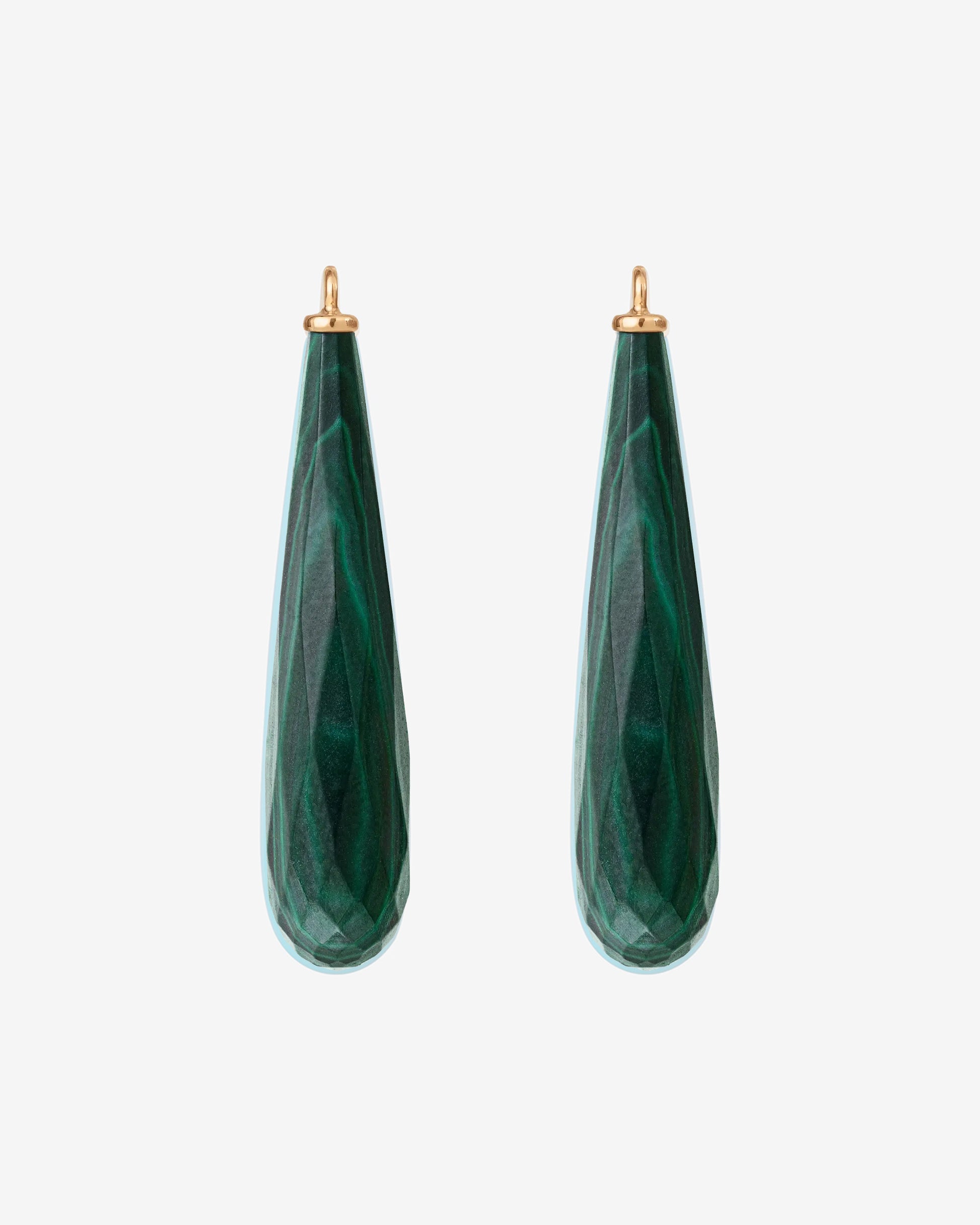 Designed by Charlotte Lynggaard, the earring pendant drops are crafted from 18 Karat Yellow gold with facetted malachite cabochon drops. Handcrafted by master goldsmiths, the pendant drops are made for hanging in earrings and pendants with eyelets.