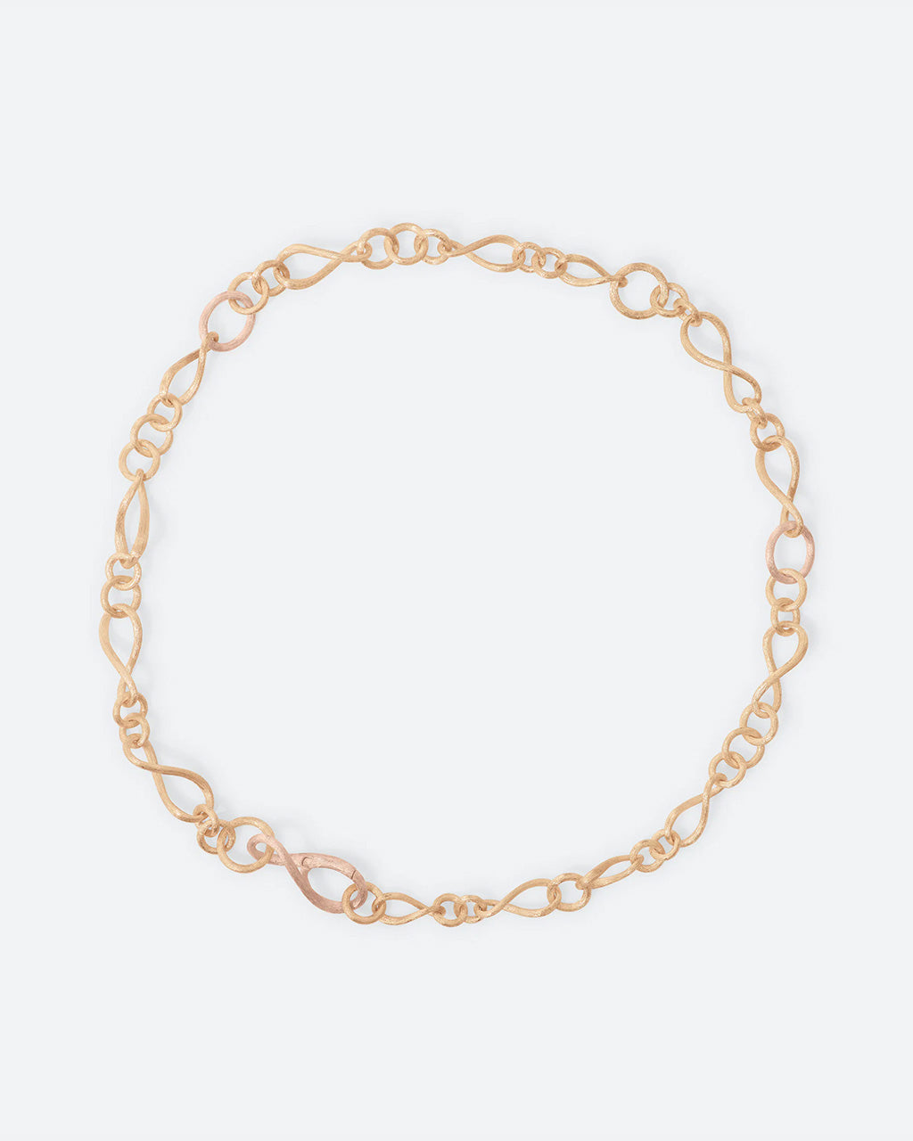The Love collier small is crafted from 18 karat yellow and rose gold. The total length is 45 cm, and the individual links are of varying sizes. Master goldsmiths hand-satinise the gold surfaces.