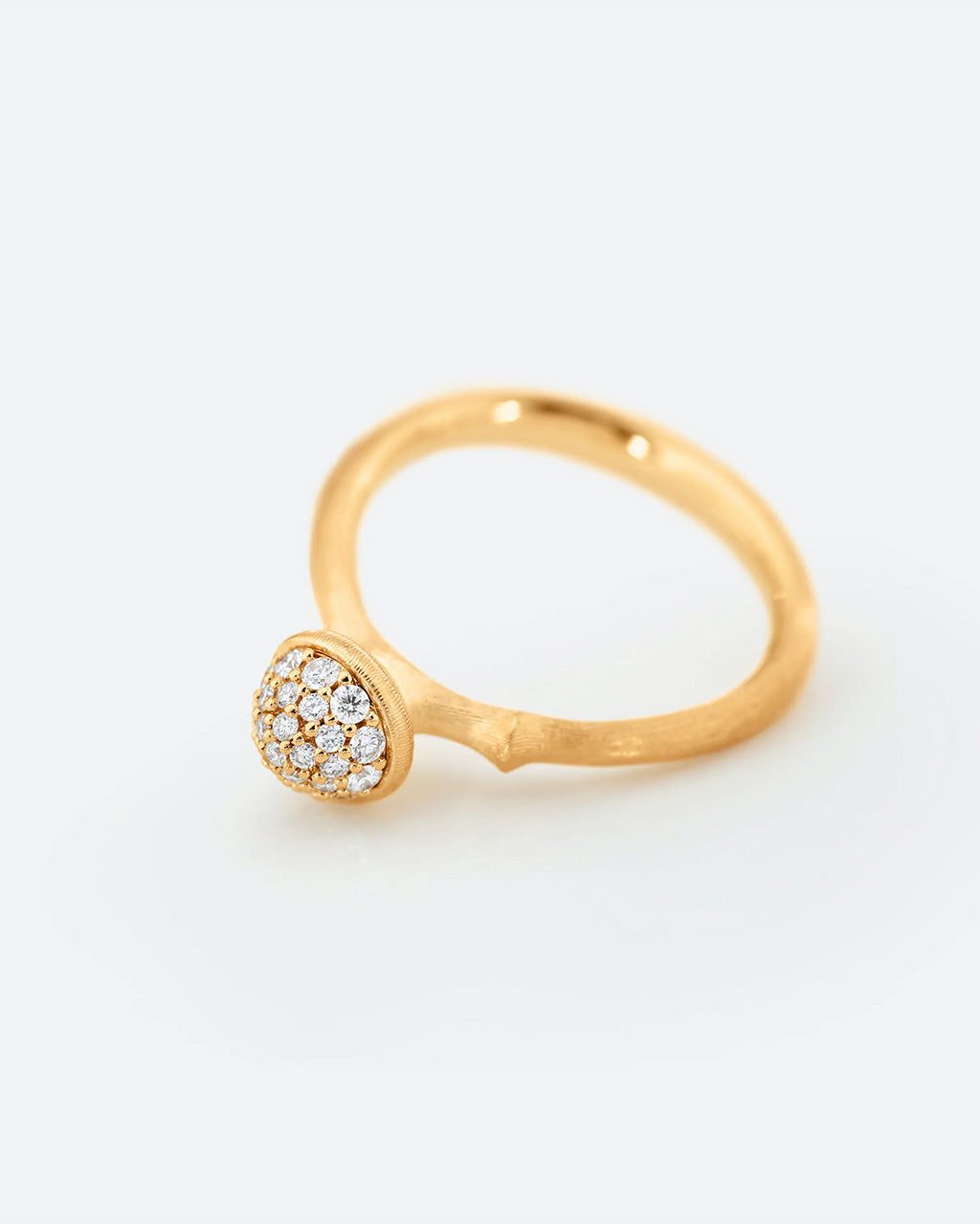 The Lotus pavé ring small is crafted from 18 Karat Yellow Gold and is set with 26 diamonds totaling 0.19 carat TW. VS. Handcrafted by master goldsmiths, the visible gold surface is hand-satinised, whilst the inside of the ring has a polished finish.