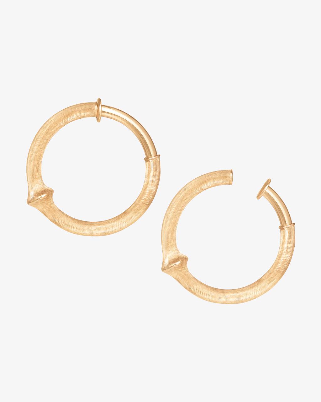 The ‘Nature’ Creol clip earrings large are crafted from 18 Karat Yellow Gold. The surfaces of the 28 mm diameter earrings are hand-satinised by master goldsmiths.
