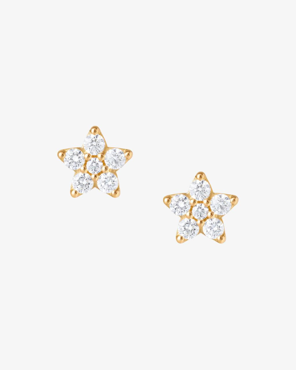 Designed by Charlotte Lynggaard, the Shooting Stars stud earrings small are crafted from 18 Karat Yellow Gold and 12 diamonds totaling 0.21 carat TW.VS. Each 6 mm star has a slightly convex, hand-polished back and comprises 6 brilliant cut diamonds, raised from the surface to allow light through the facets. Handcrafted by master goldsmiths. Part of the Shooting Stars Collection.