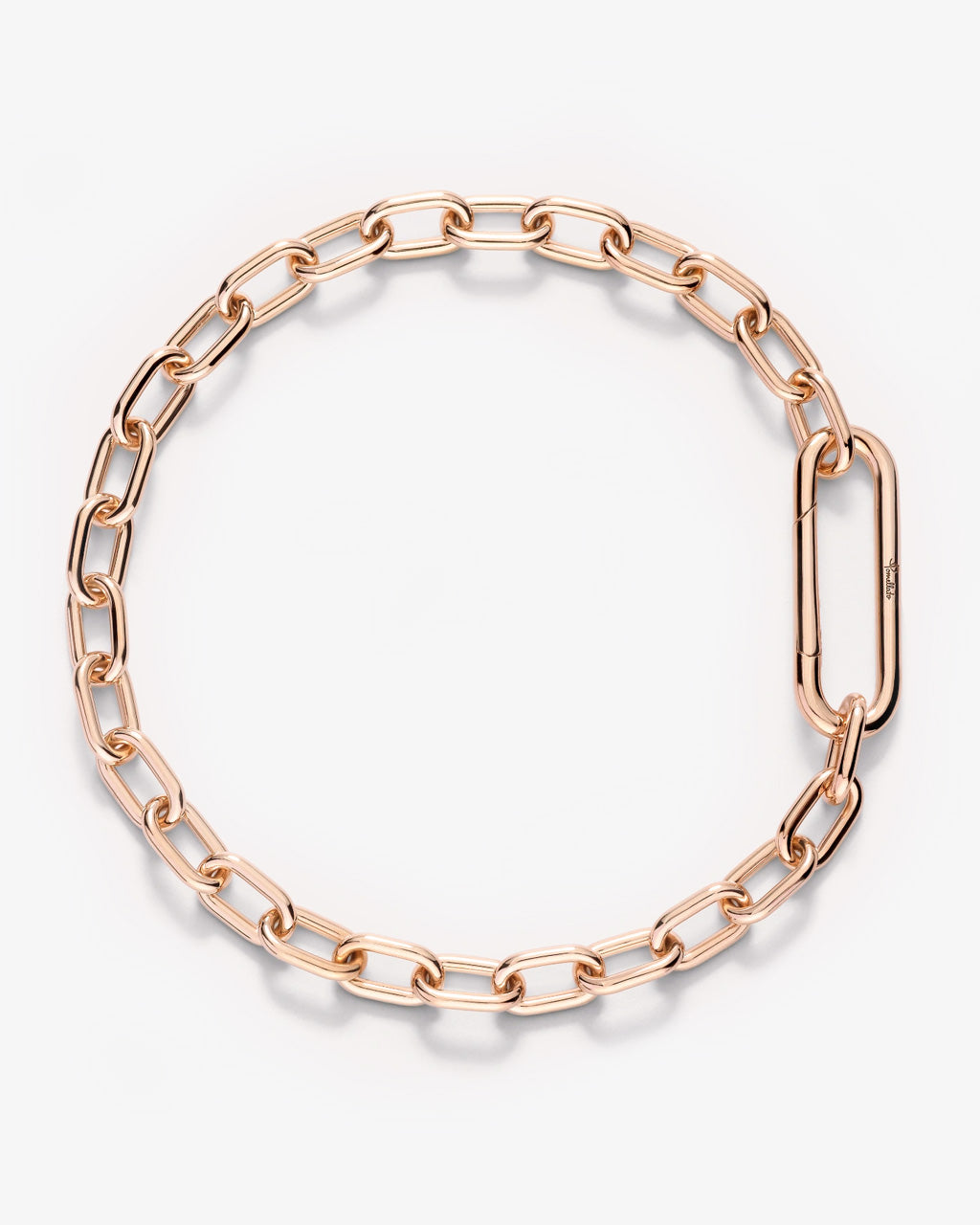 The Pomellato "Iconica" Link Bracelet in 18 Karat Rose Gold featuring a unique outsize link snap-closure of Iconica. The clean lines are universally appealing. Ideal and refined, inspired by Milanese design.