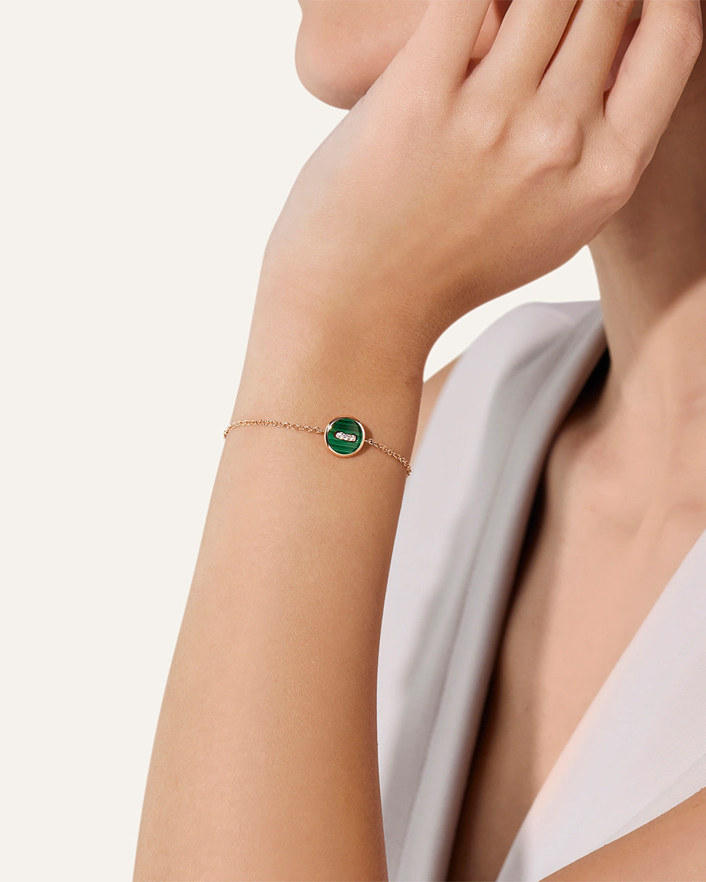 POMELLATO Pom Pom Dot Bracelet in 18 karat Rose Gold with 1 x 1.10ct white mother of pearl, 1 x 1.50ct Malachite and 10=0.03ct Diamonds