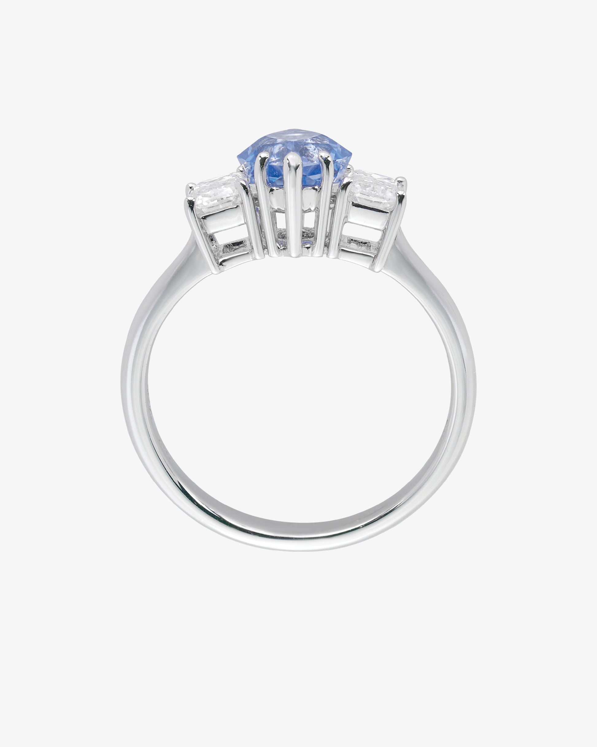 18ct White Gold 1.40ct Ceylon Sapphire & 2=0.80ct ASHOKA® Diamond 3-Stone Ring.