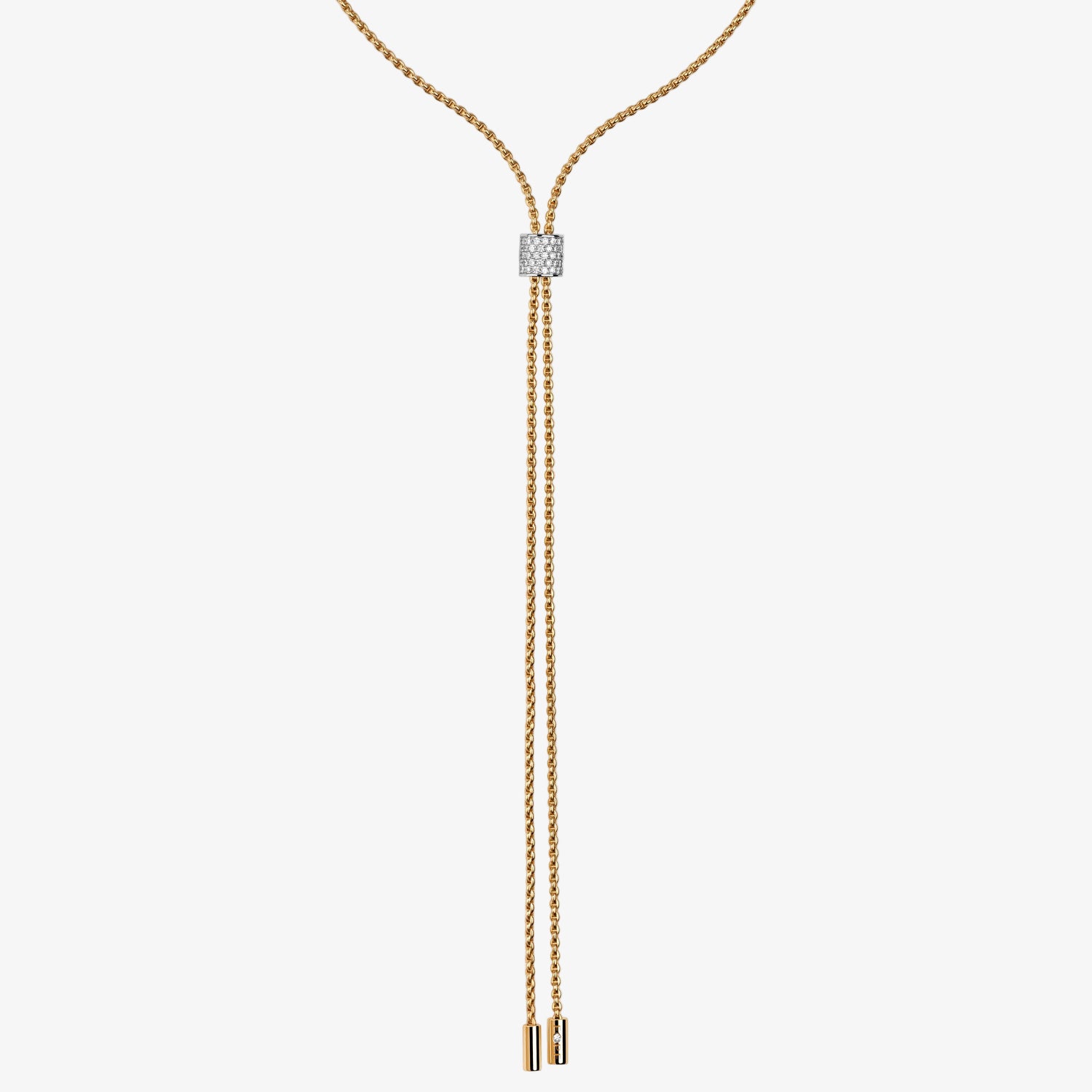 18 karat yellow gold necklace with a 0.48ct diamond pavé slider for adjustable length.