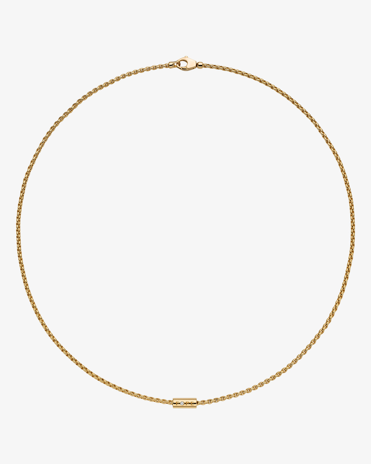 18 karat yellow gold necklace with a 0.02ct white diamond.