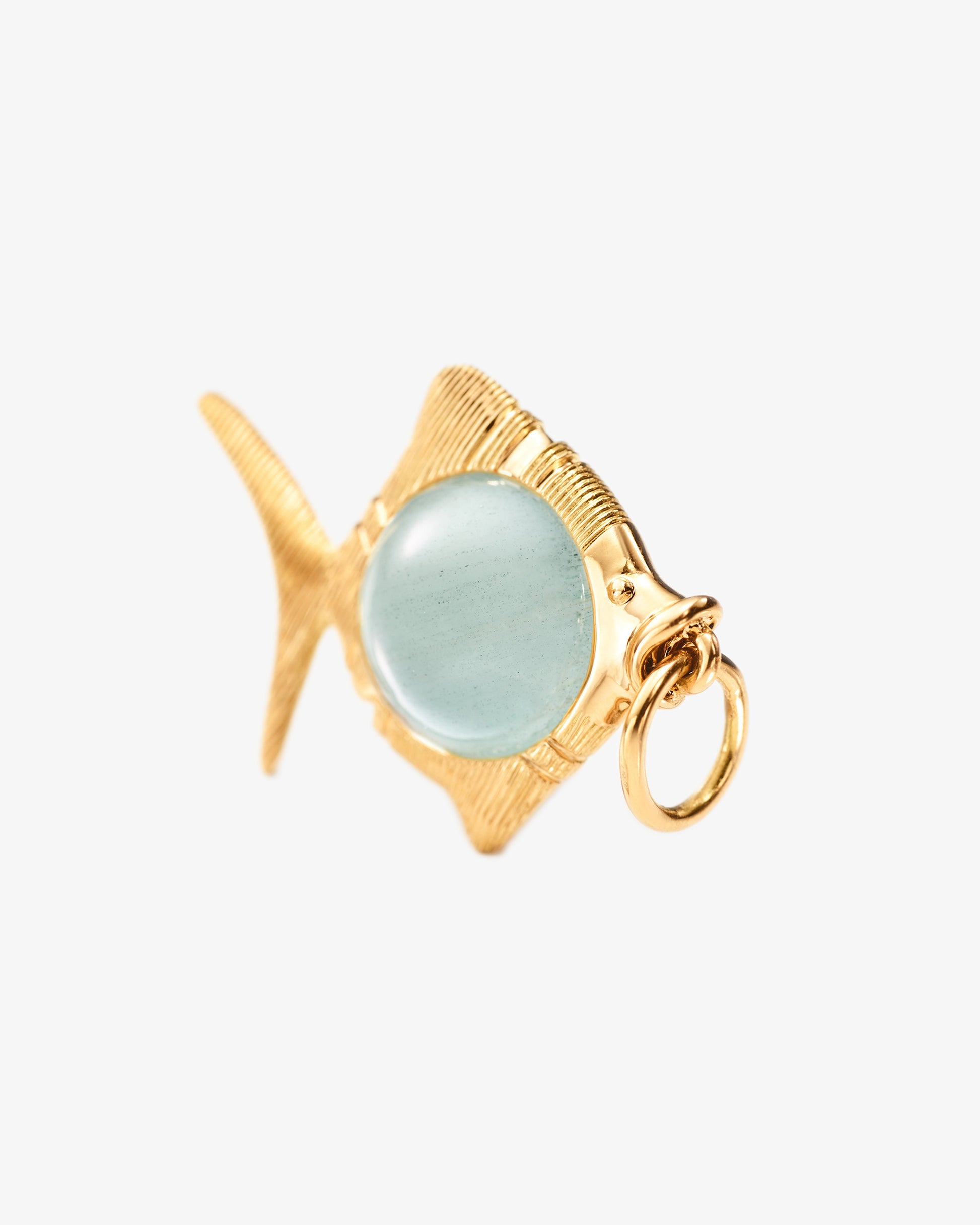Young Fish Pendant in 18 Karat Yellow gold with aquamarine.