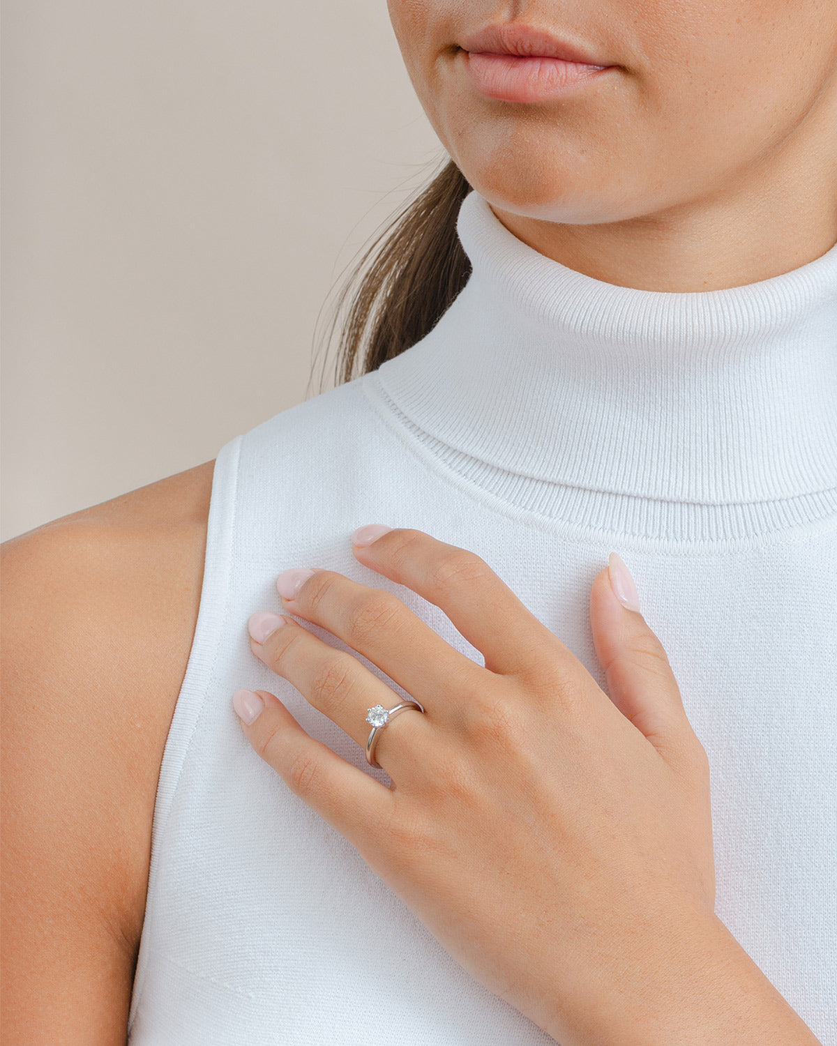 18 karat white gold 6-Claw Solitaire Diamond Ring