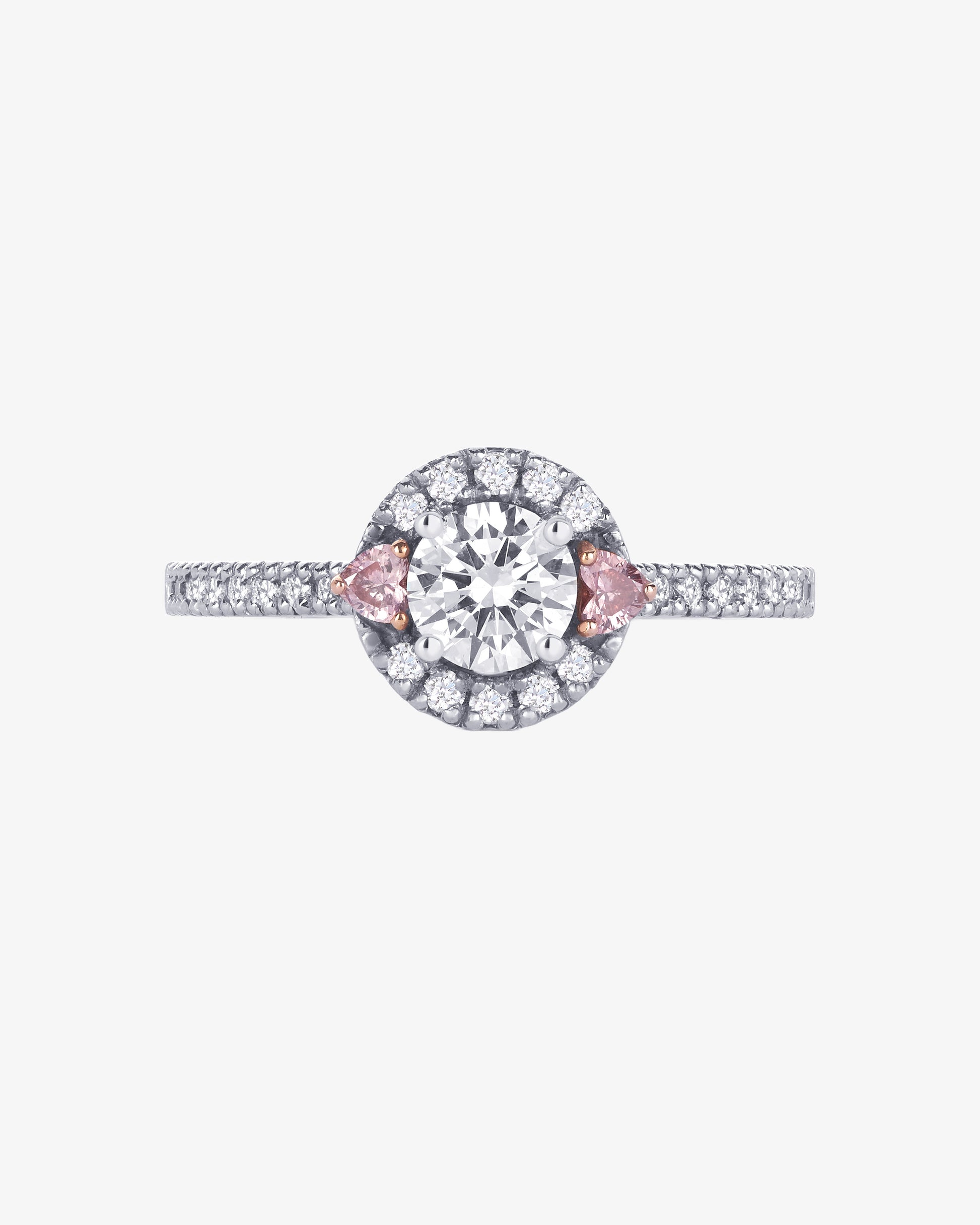 18 karat white and rose gold adorned with two heart-cut Pink Diamonds from the Argyle mine. This exquisite piece is the perfect symbol of love and devotion.