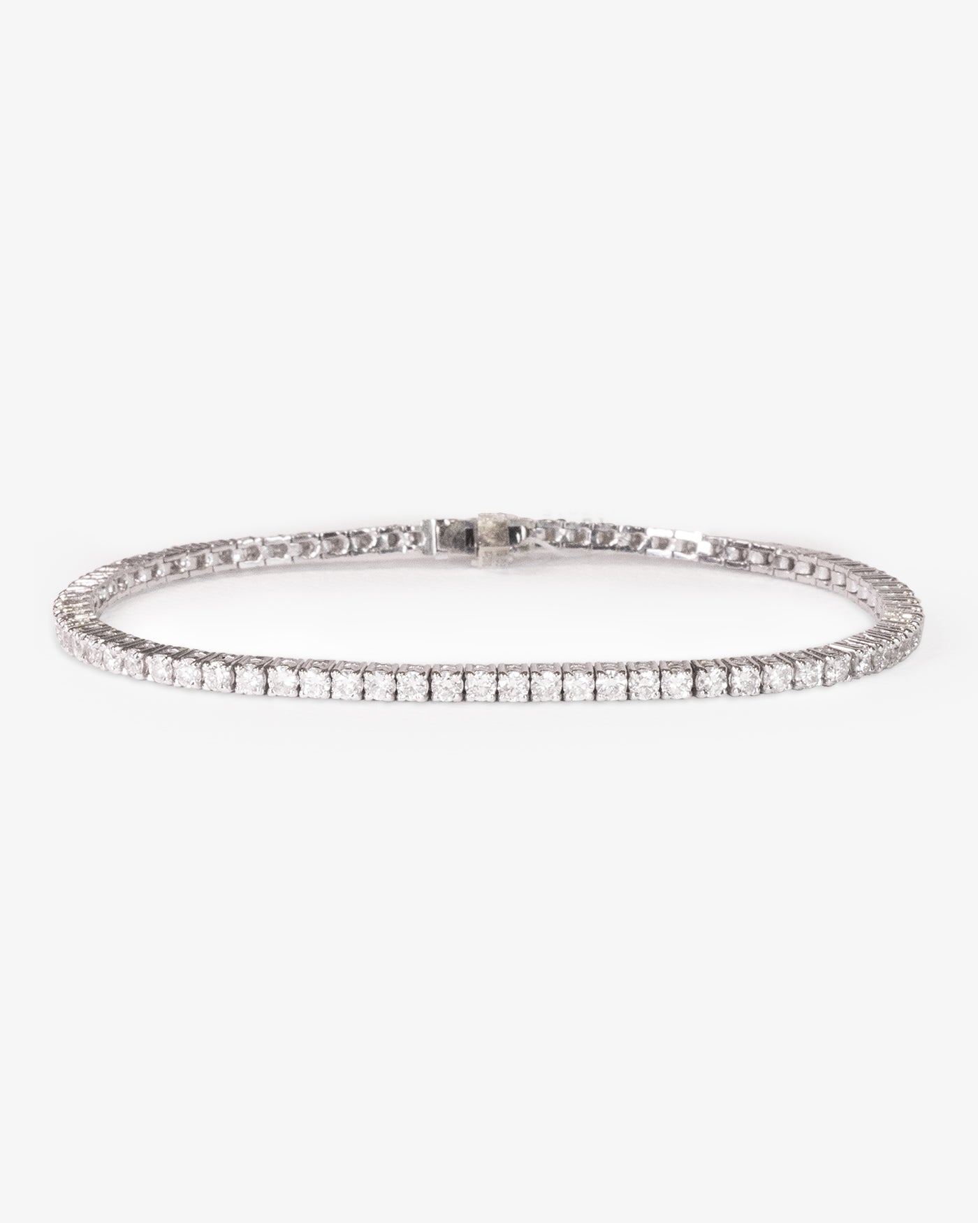 18 Karat White Gold Diamond Tennis Bracelet, featuring 73 Round Brilliant cut Diamonds.